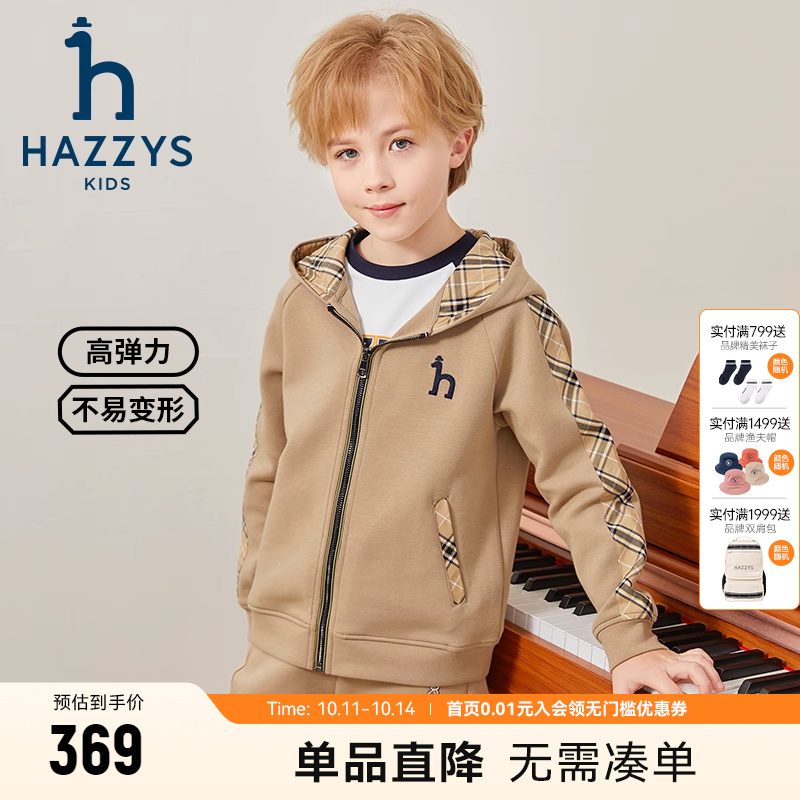 hazzys哈吉斯童装 男童外套秋新中大童双面布莱卡弹力连帽上衣