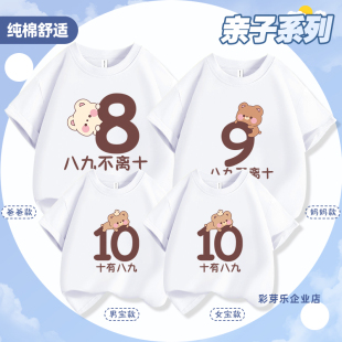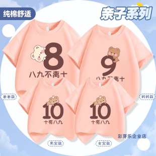 炸街高级感母子母女装 T恤一家三口四口夏季 短袖 八九不离十亲子装