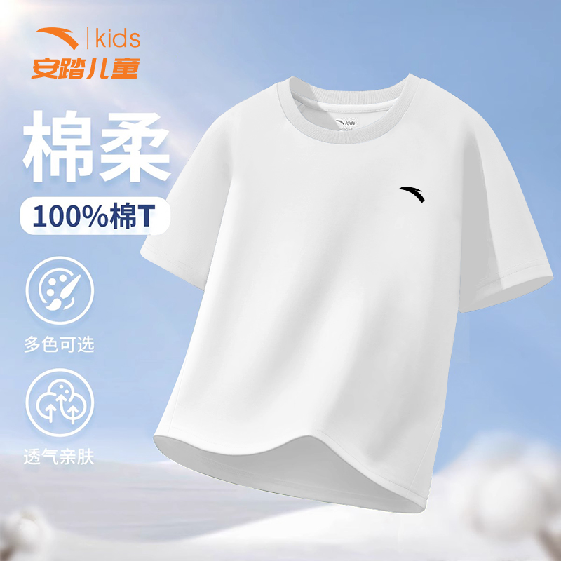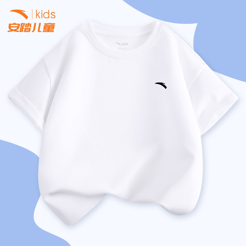 儿童纯棉T恤大童男孩运动夏装 安踏童装 新款 2025秋季 男童休闲短袖