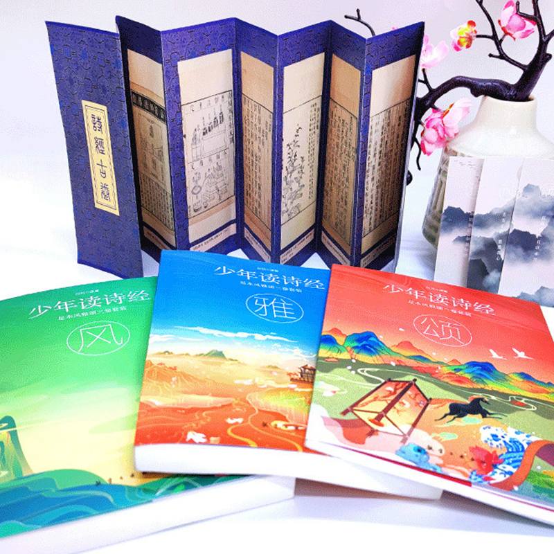 小学初中国学启蒙经典 赠精美书签和古本诗经 散文诗经青少年精选诗集课外阅读书籍 全集3册译注解读 少年读诗经足本风雅颂三卷套装
