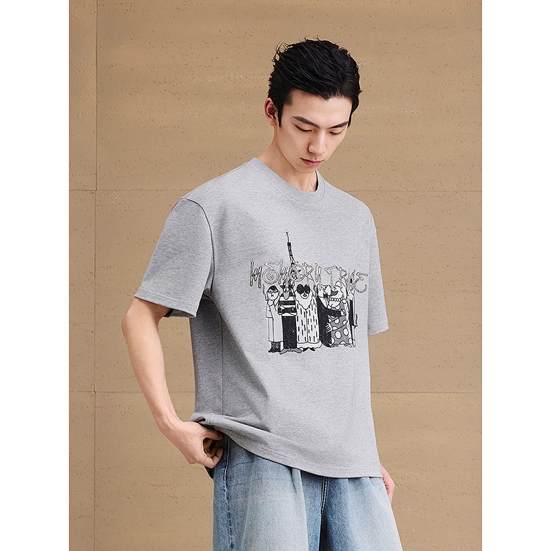 新品 GXG男装 2025夏季 针织 圆领T恤卡通图案印花上衣凉感短袖