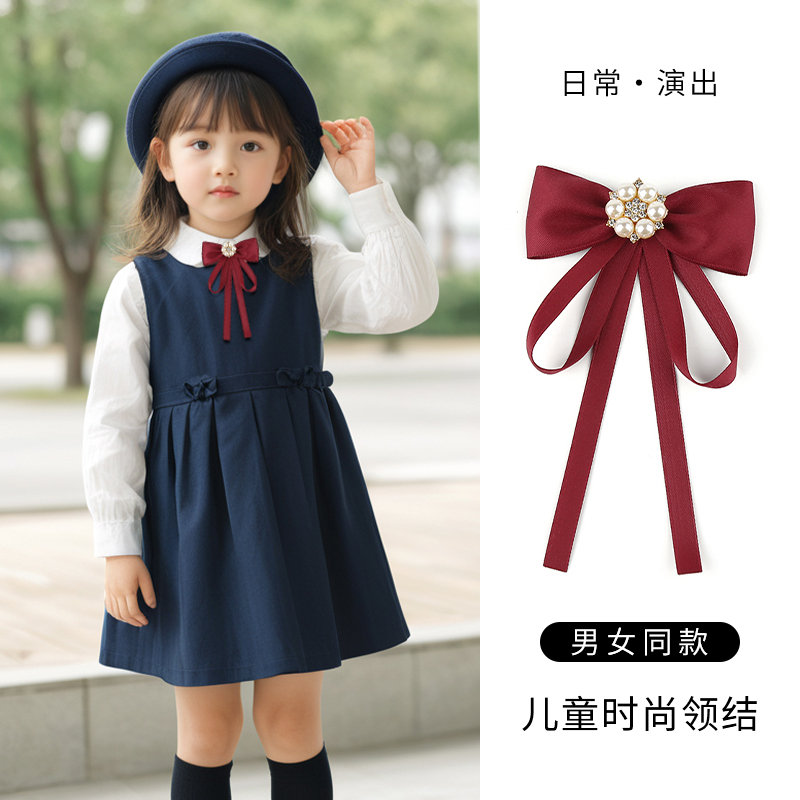 饰儿童黑色蝴蝶结飘带领花 女学院风装 韩版 酒红色日系JK领结衬衫