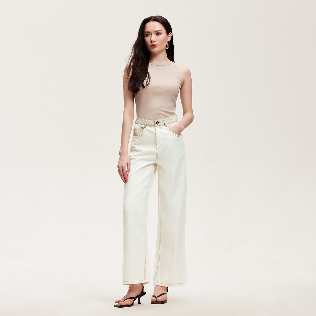 高腰含棉莱赛尔九分阔腿裤 Vero 新款 2025夏季 325249009 Moda牛仔裤