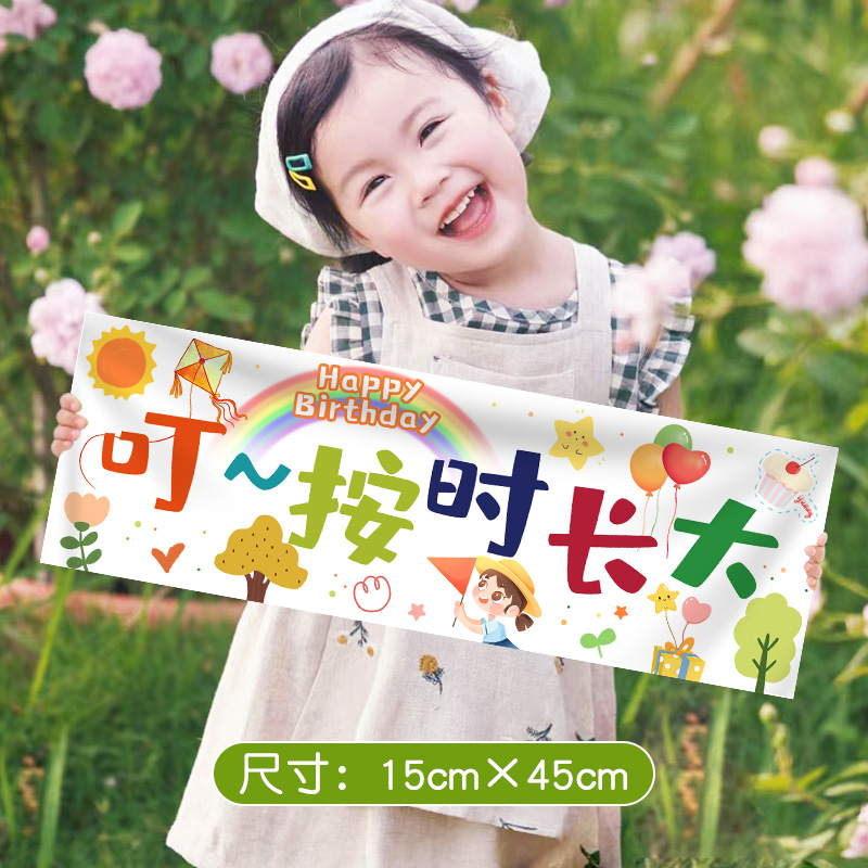 儿童生日手持小横幅男孩女孩周岁仪式 饰条幅 感拍照道具派对氛围装