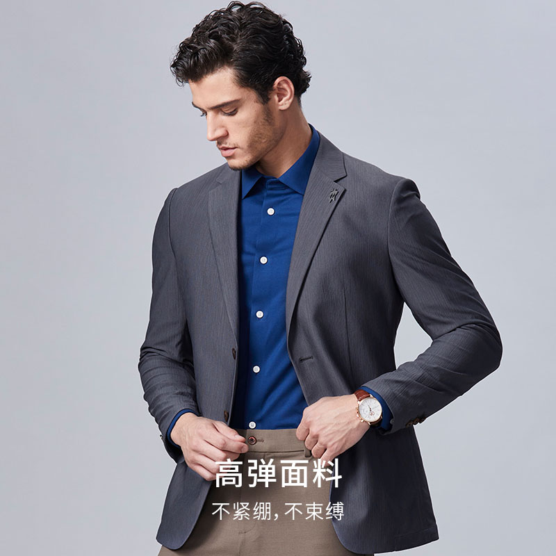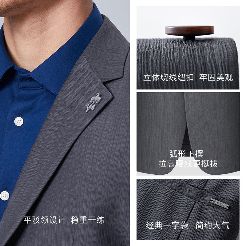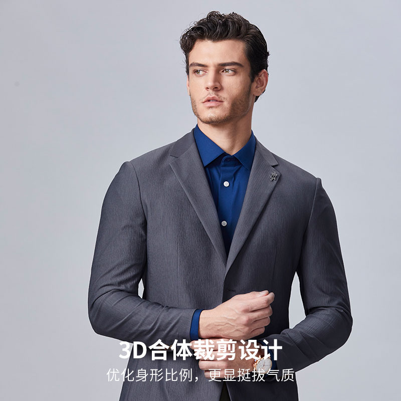 柒牌西装 免烫西服 男士 套装 西服两件套 秋冬商务正装 犀牛褶