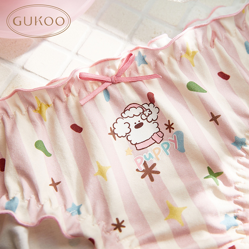 组合装 Gukoo 卡通系列纯棉裆底三条内裤 女四季 果壳内裤