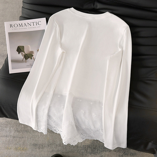 新款 长袖 女装 蕾丝拼接宽松款 套头上衣 法式 她池圆领T恤2025秋装