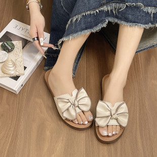 牛筋底拖鞋 女夏外穿学生蝴蝶结孕妇外出防滑平底沙滩海边软底凉拖