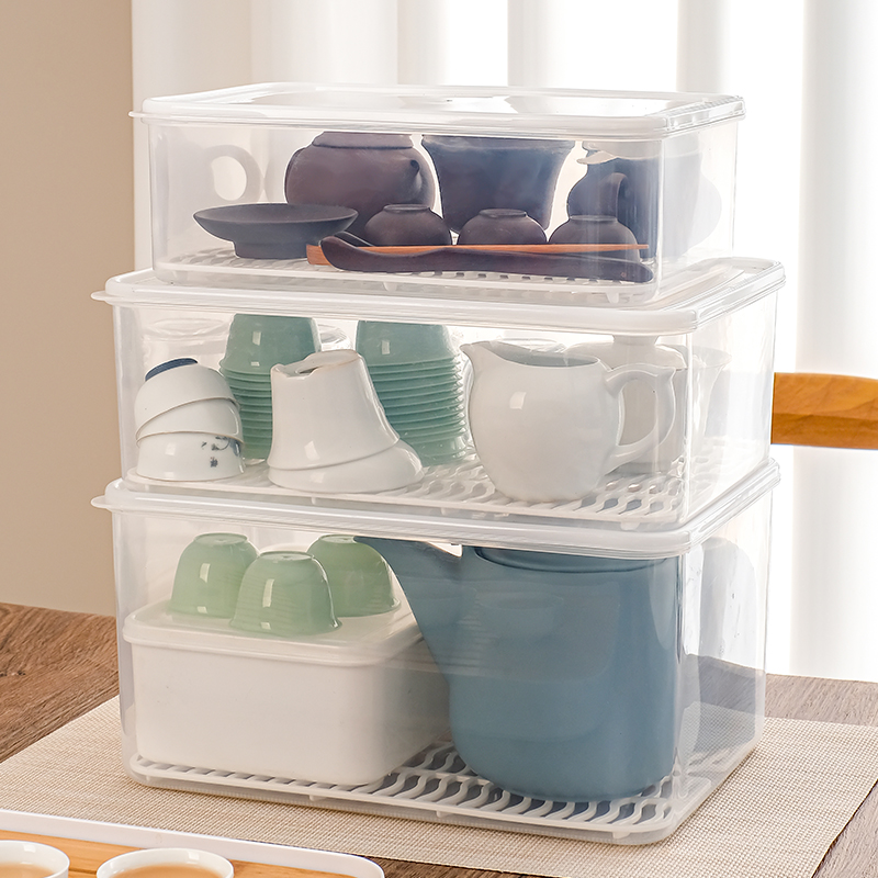 茶具收纳盒带盖防尘可叠加可沥水茶叶茶杯整理存放功夫茶壶置物盒