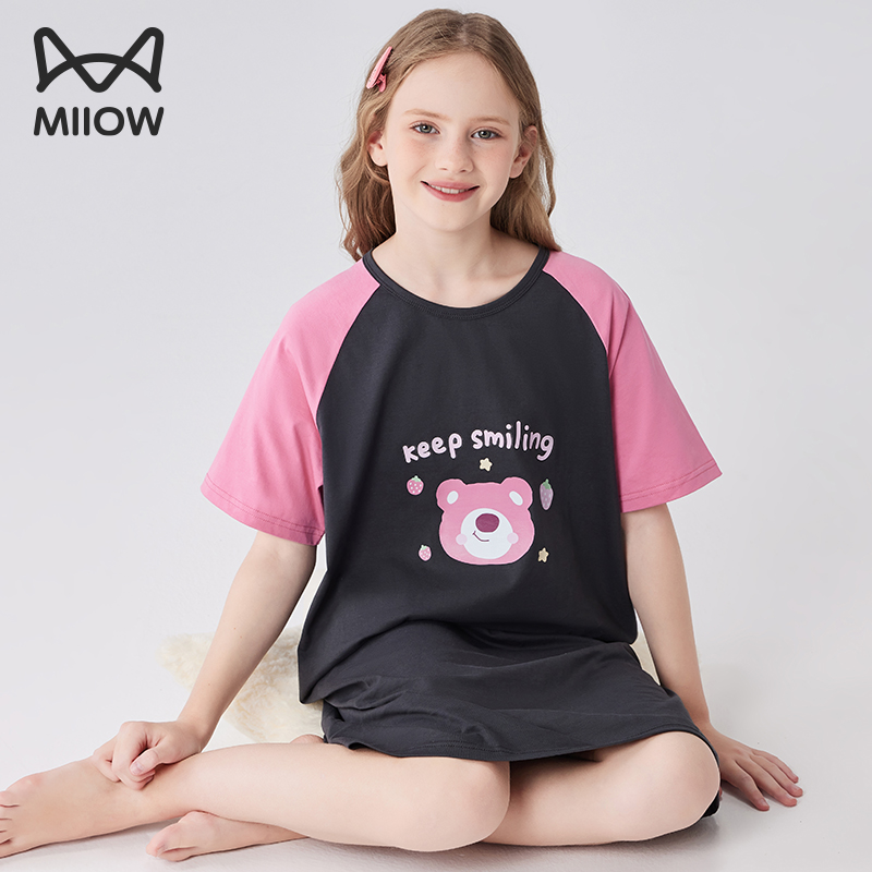 猫人儿童睡裙公主风女大童全纯棉短袖 夏天 睡衣女孩家居服2025新款
