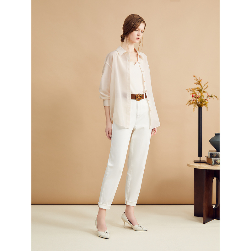 新款 女秋季 宽松衬衣设计感百搭上衣 蓝色休闲衬衫 MAMC褶皱收腰长袖