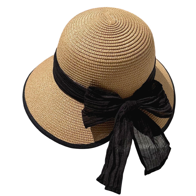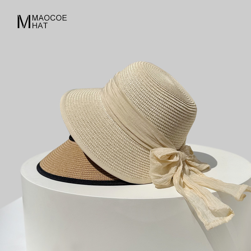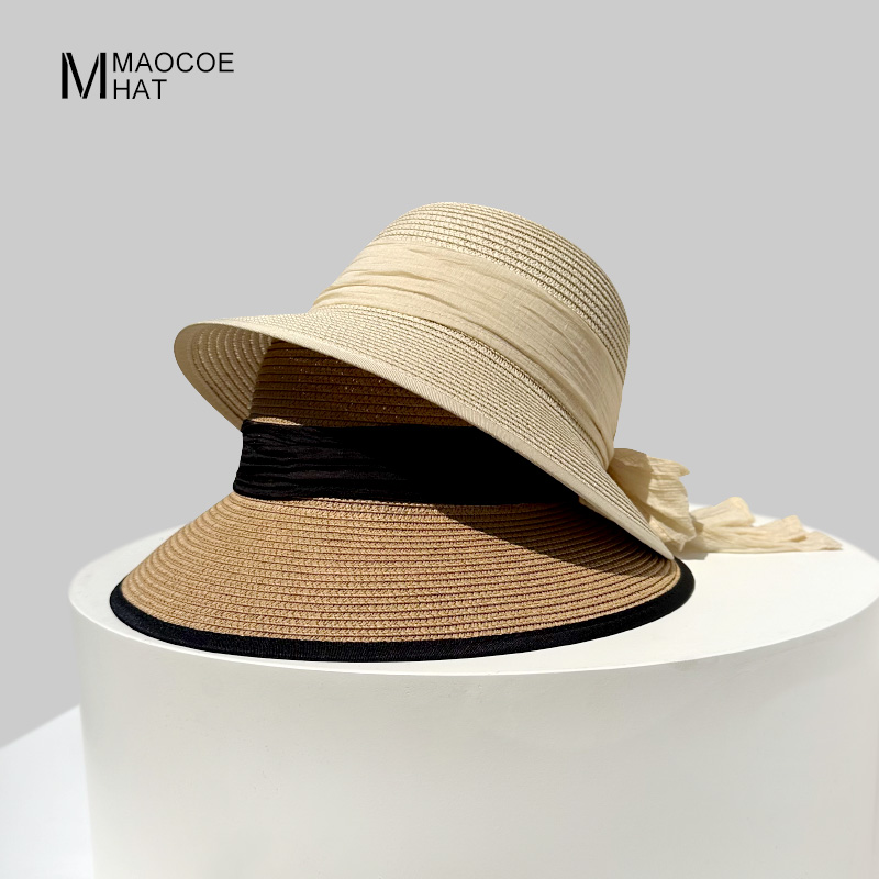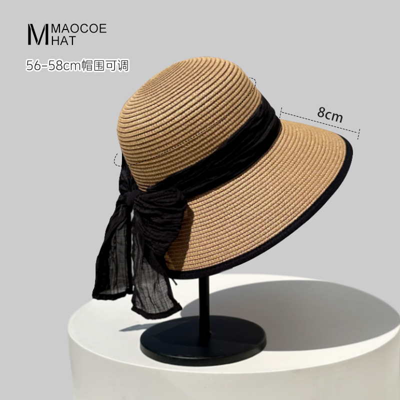 蝴蝶结遮阳草帽女夏海边沙滩帽防晒渔夫帽可折叠时尚 出游大檐帽子