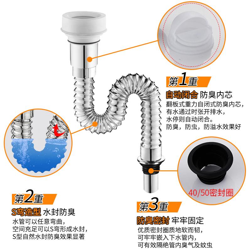 小便器下水管挂便池免打胶排水管不锈钢小便斗防臭带钢丝厕所配件