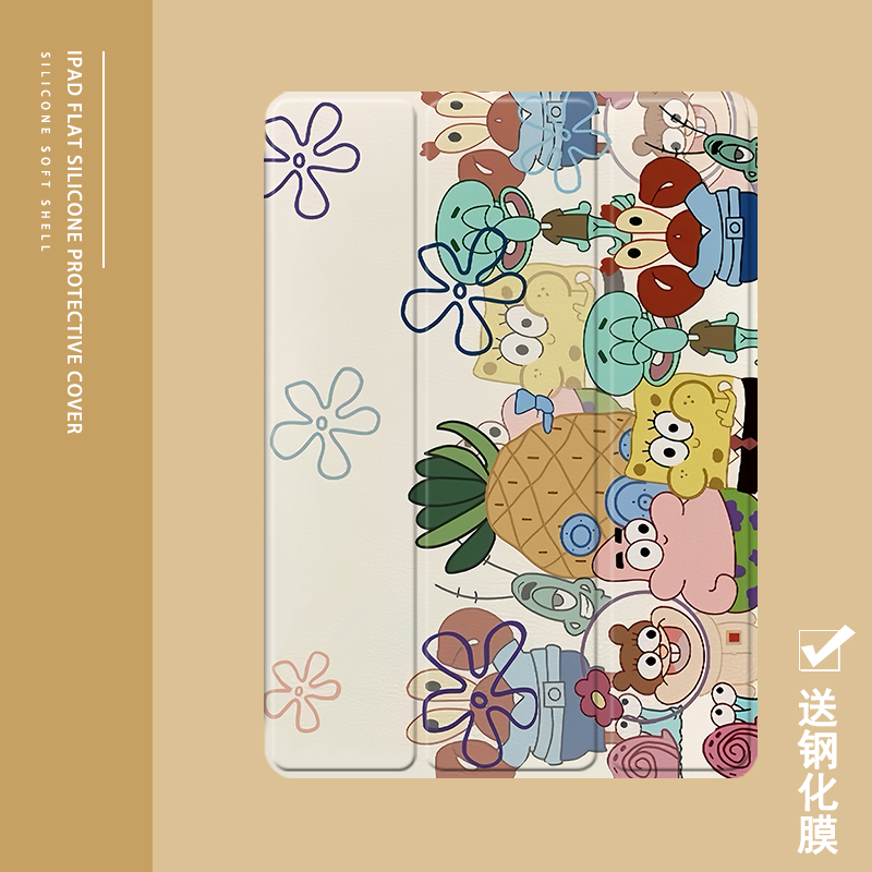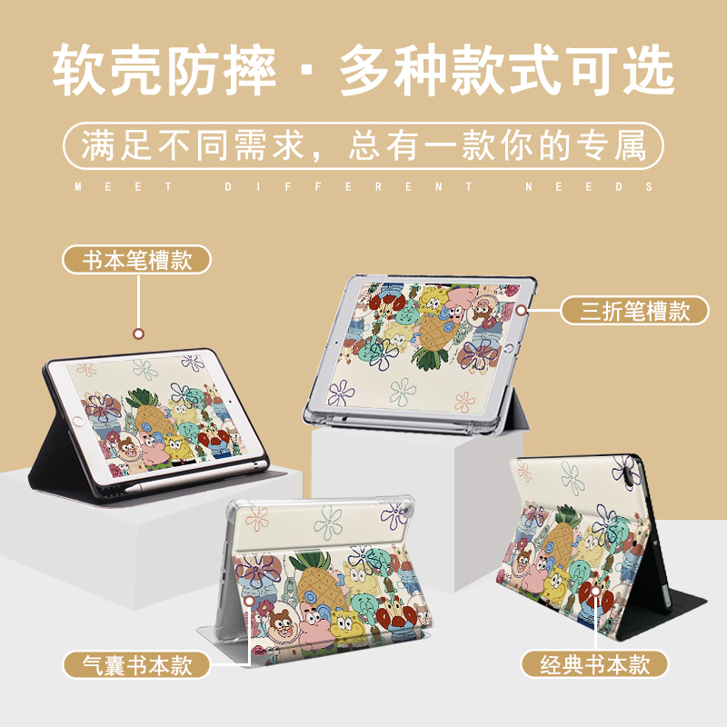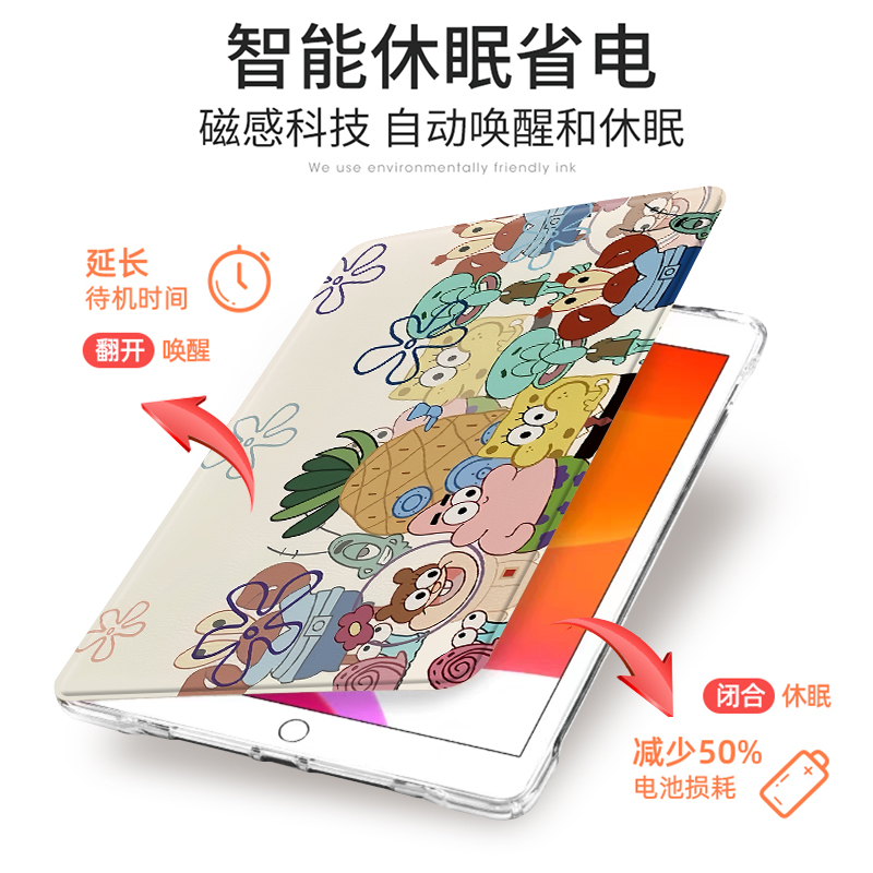 c5笔槽v6畅享2气囊10.1 M5青春版 海绵宝派大星华为matepad11适用pro10.8 10.4英寸平板壳荣耀7三折x6保护套M6