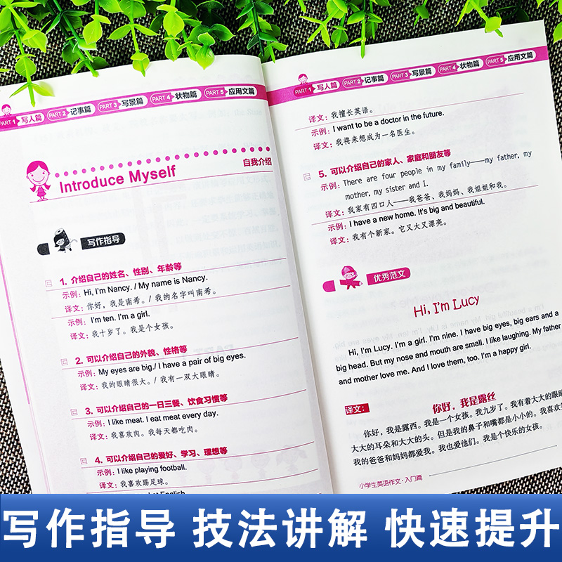 三四五六年级小学英语作文范文大全小学生英语作文书入门与提高小升初英语作文写作训练大全 典范篇 2册 小学生英语作文入门篇