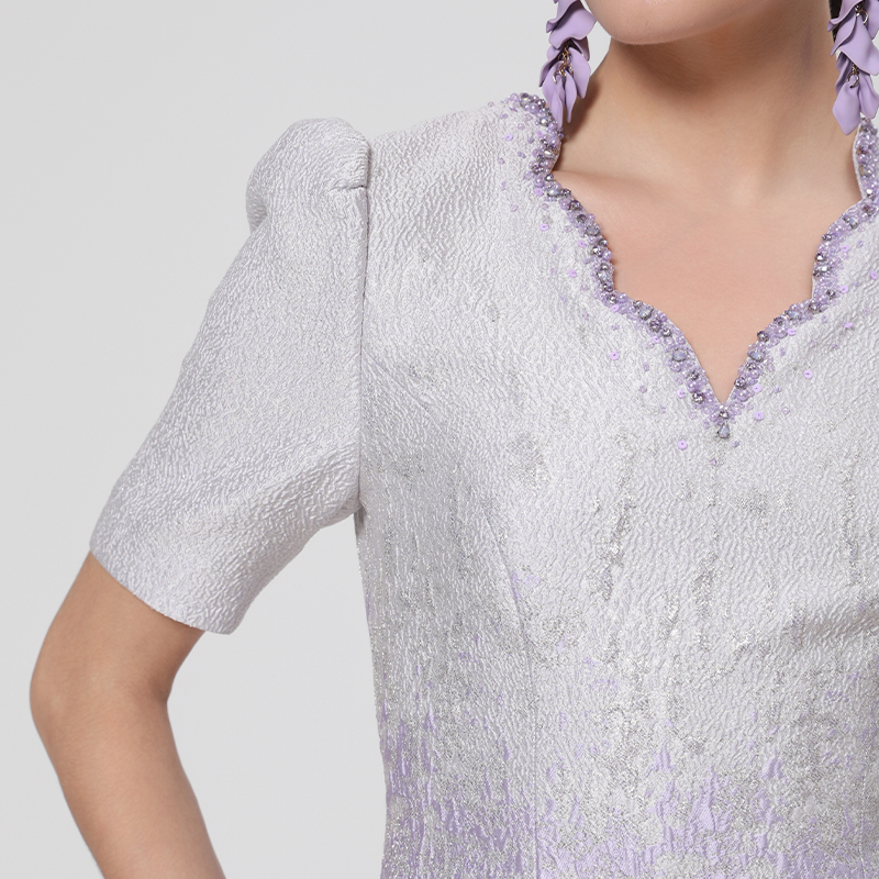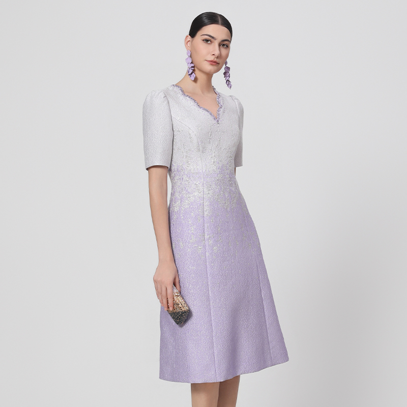 国风刺绣拼接宴会礼服连衣裙女 粉蓝衣橱春秋装 馥郁东方醋酸裙
