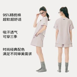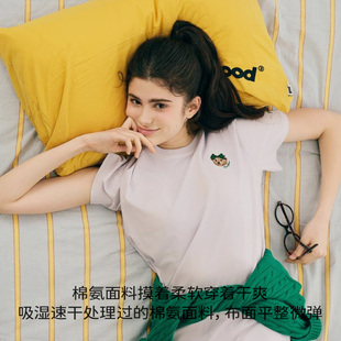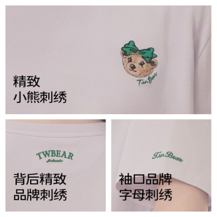 TeenieWeenie小熊睡衣女士2025春夏新款 圆领刺绣家居服 带胸垫短袖