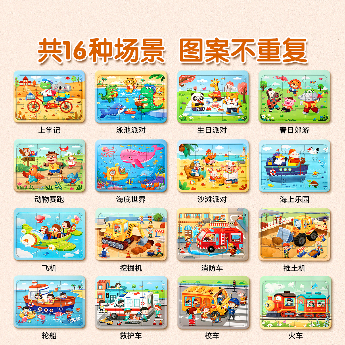 儿童进阶拼图3到6岁益智玩具宝宝幼儿2男孩4三两汽车工程车智力