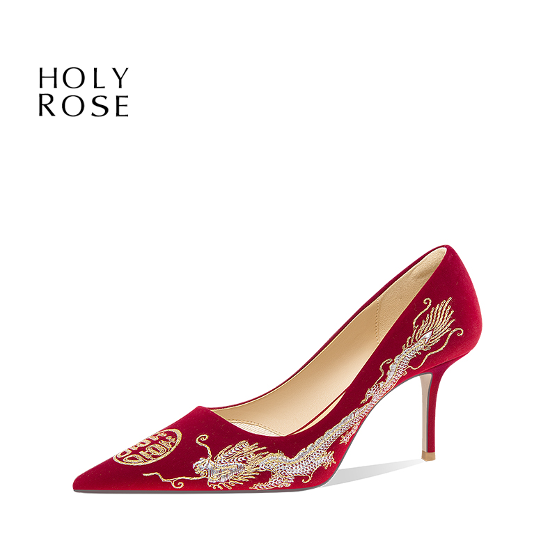 刺绣秀禾服新娘旗袍高跟鞋 中式 女细跟2025年新款 HolyRose红色婚鞋