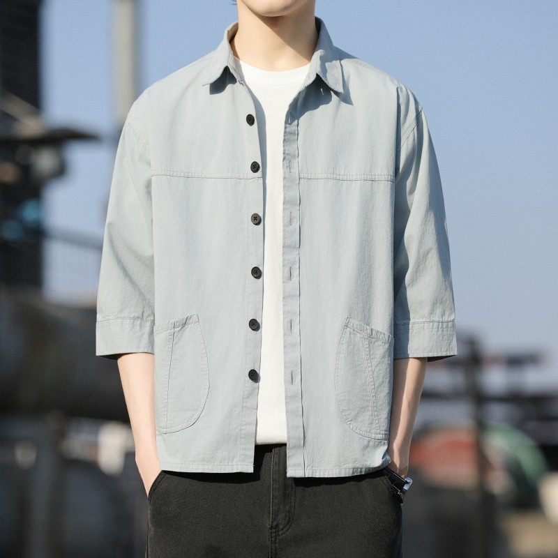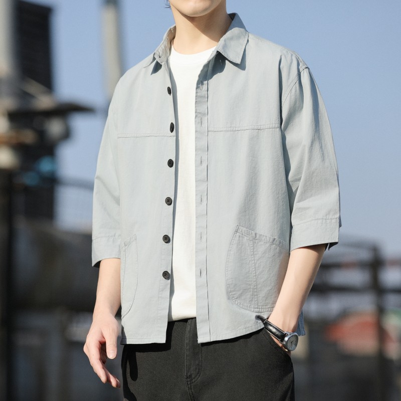 纯棉七分袖 男士 衬衫 中袖 衬衣男上衣外套 2025夏季 宽松休闲工装 新款