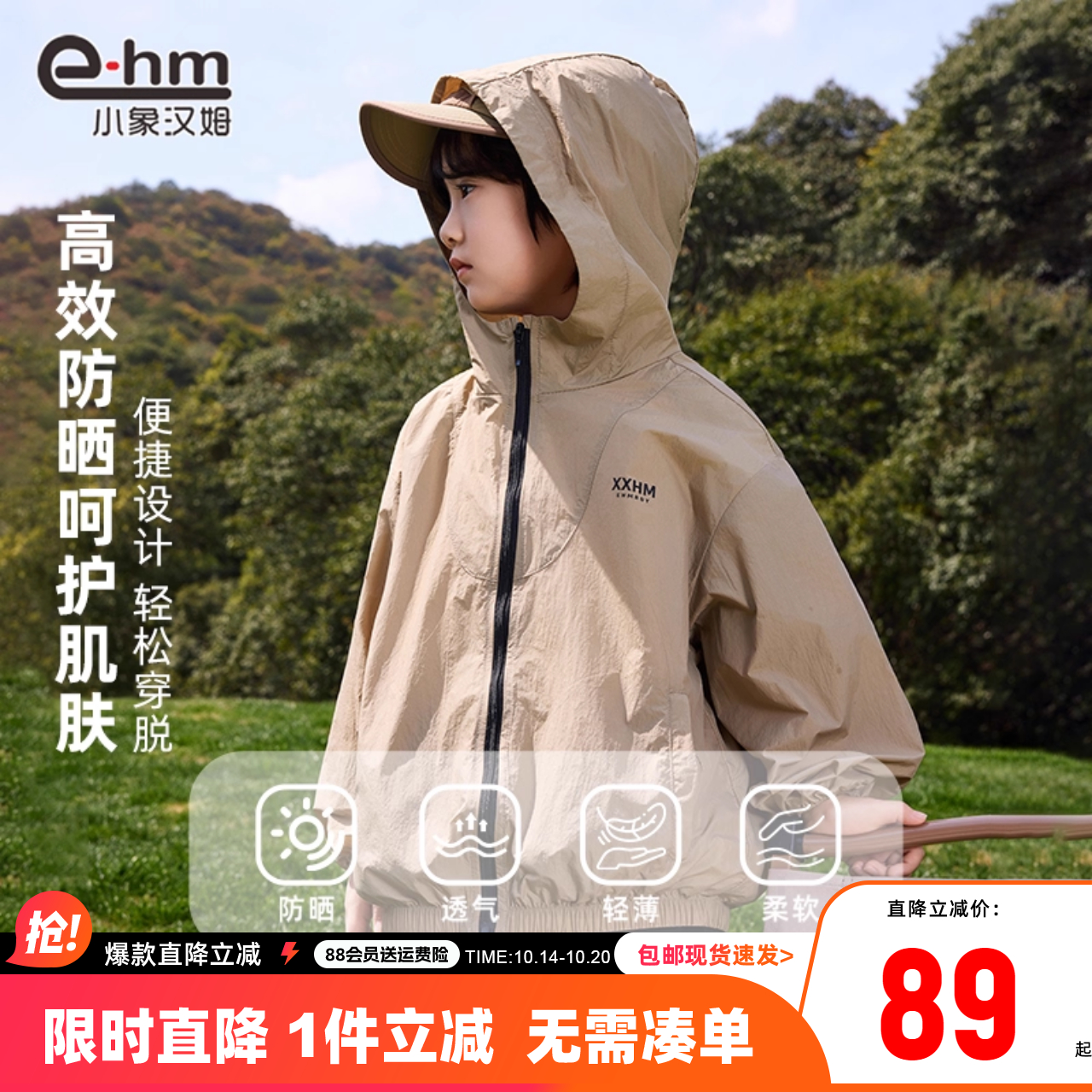 小象汉姆童装 男孩薄外套薄 男童夏天防晒衣儿童皮肤衣户外2025新款