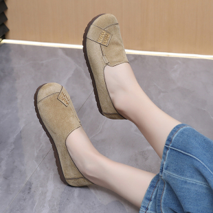 复古风平底防滑休闲春秋妈妈鞋 春季 舒适百搭软底豆豆鞋 女单鞋 新款