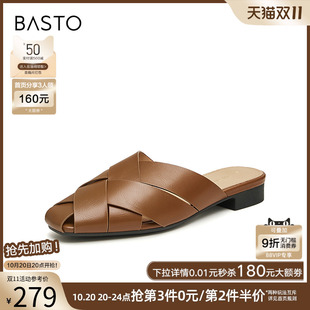 包头女凉鞋 百思图夏季 外穿半拖鞋 编织罗马穆勒鞋 M3012BH4 新款