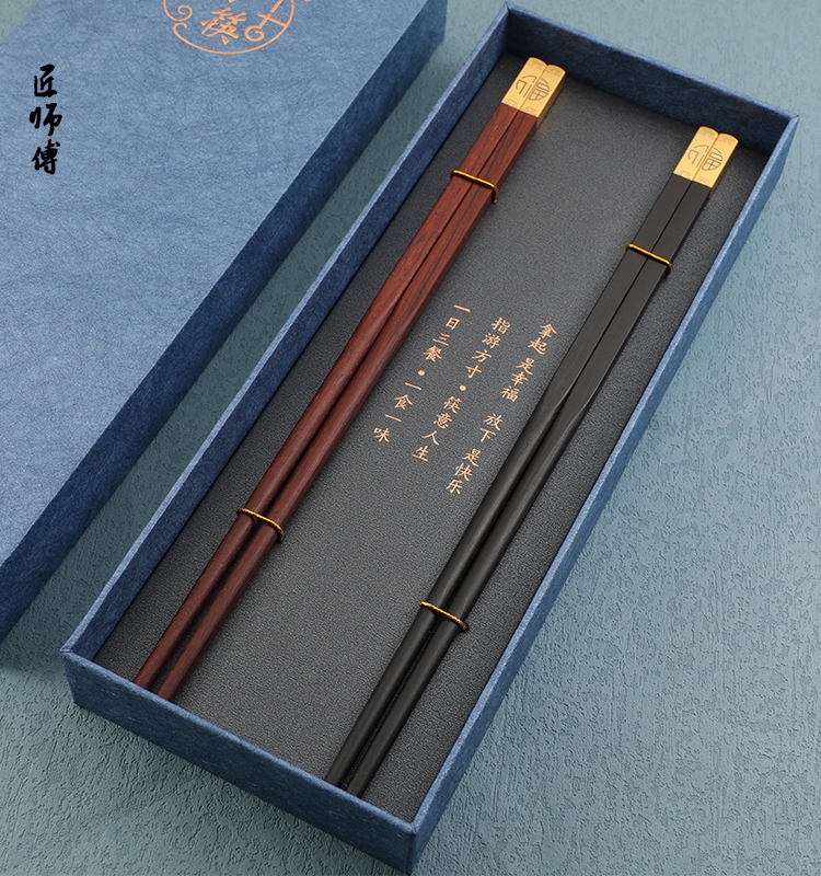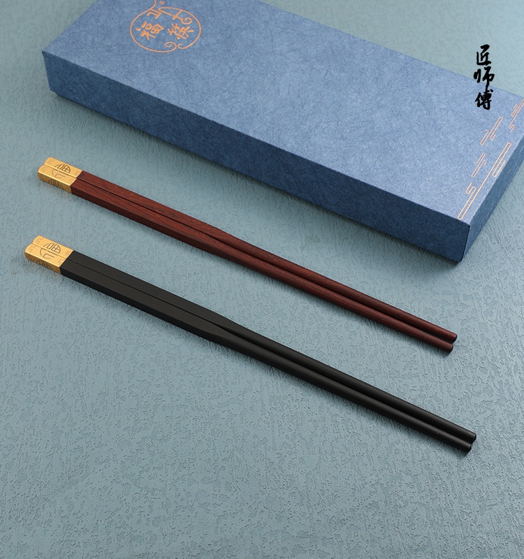 高端酸枝木金福筷子自用木质筷送礼2双情侣高档礼盒装 可定制雕刻