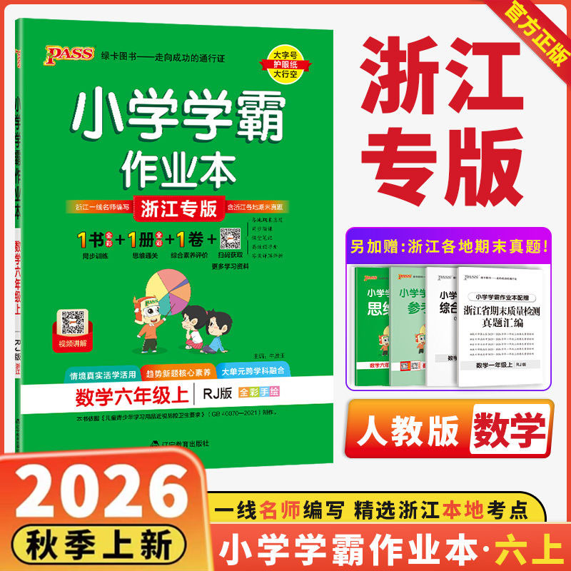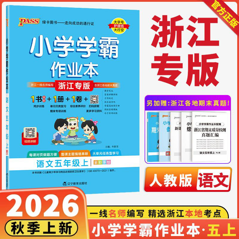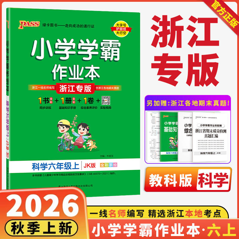 三年级四年级五年级六年级上册下册同步练习册同步训练课时作业题天天练 语文数学英语人教版 2026浙江专版 小学学霸作业本科学教科版