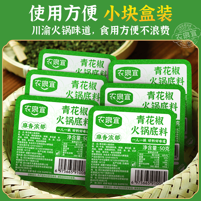 麻辣烫底料 重庆牛油清汤底料小包装 农泉宜青花椒 菌汤火锅底料