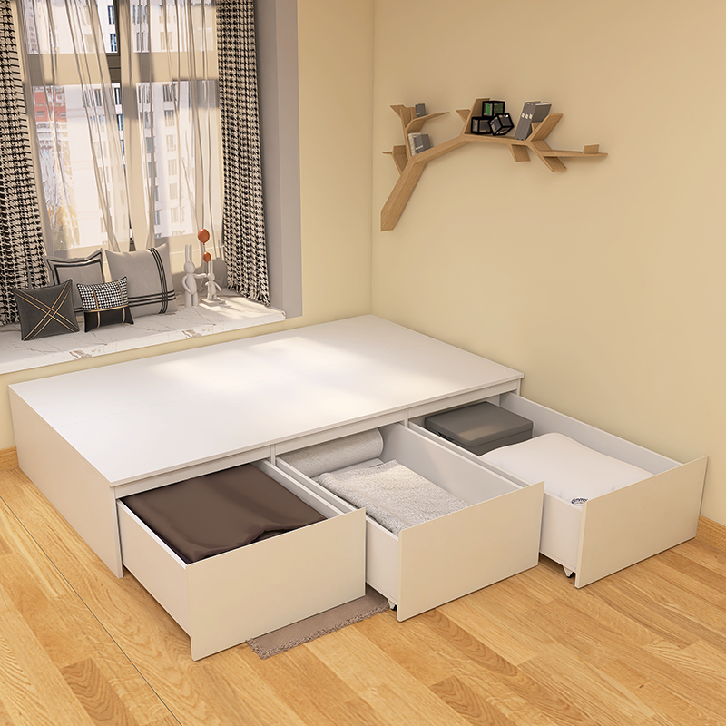 实木抽屉床无床头高箱收纳储物式 床 单人小户型榻榻米下带大抽屉