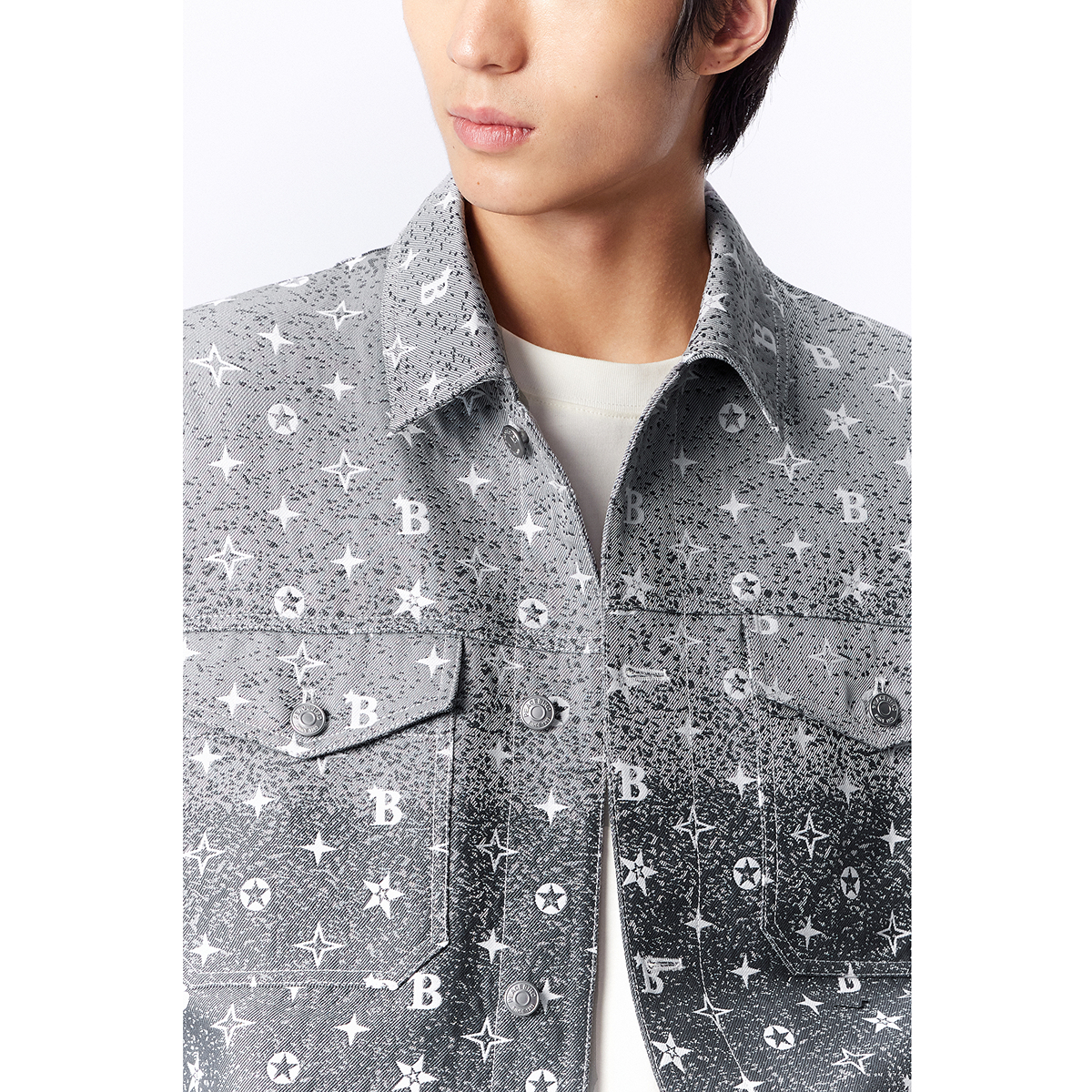 太平鸟男装 满印潮流休闲茄克外套 立体提花渐变牛仔夹克秋冬季