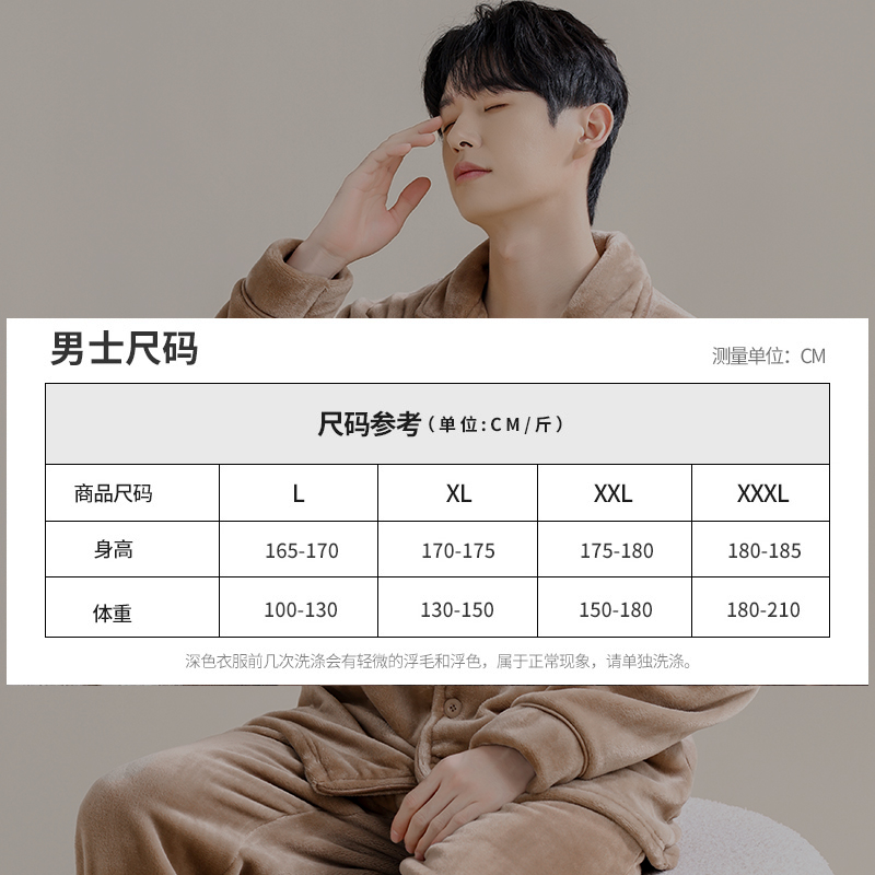 男生法兰绒新款 南极人男士 加绒加厚珊瑚绒家居服套装 冬季 睡衣男款