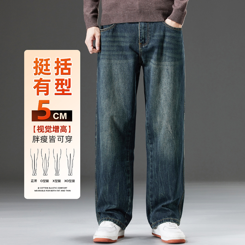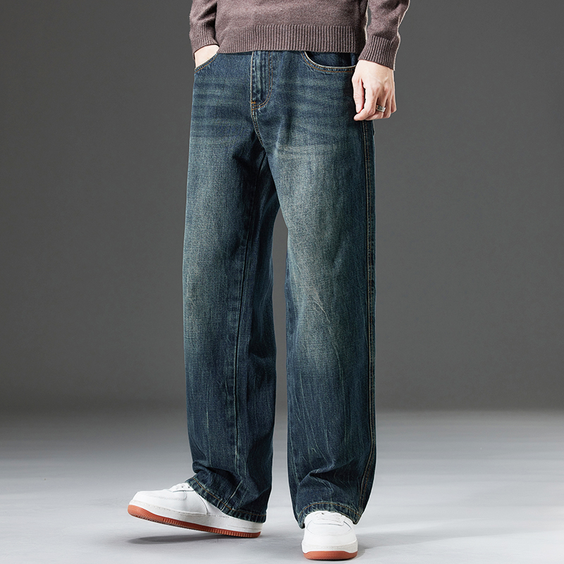男秋季 休闲男裤 新款 子潮牌复古百搭水洗大码 宽松直筒裤 阔腿牛仔裤