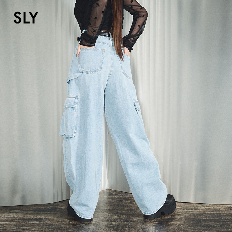 SLY 春季 030HSA01 MICHI 0090 阔腿牛仔裤 裤 高腰工装