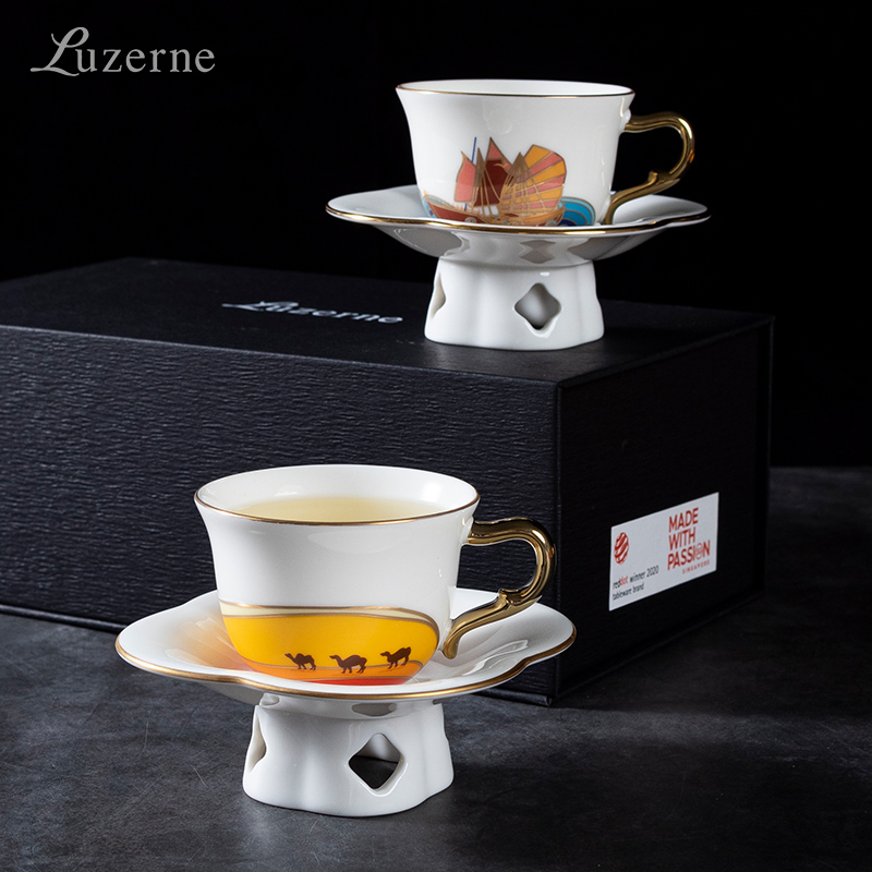 Luzerne陆升丝绸之路咖啡杯新骨瓷描金陶瓷咖啡具下午茶红茶杯子