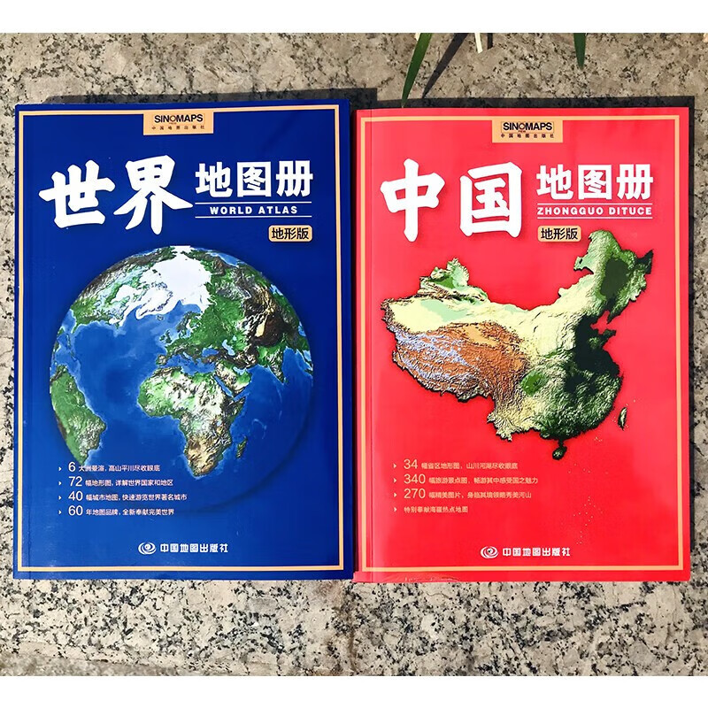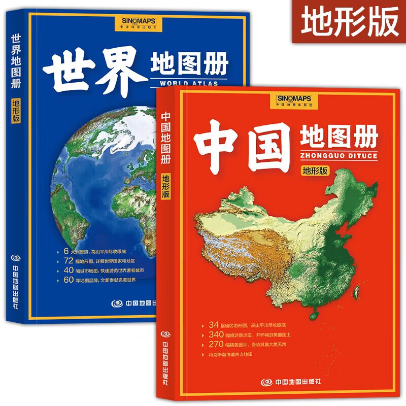 城市 社 世界地图册 中国地图出版 办公学生地理学习 海量各国家大洲区域地形图 100余幅各省市 地形图 升级版 中国地图册 地形版