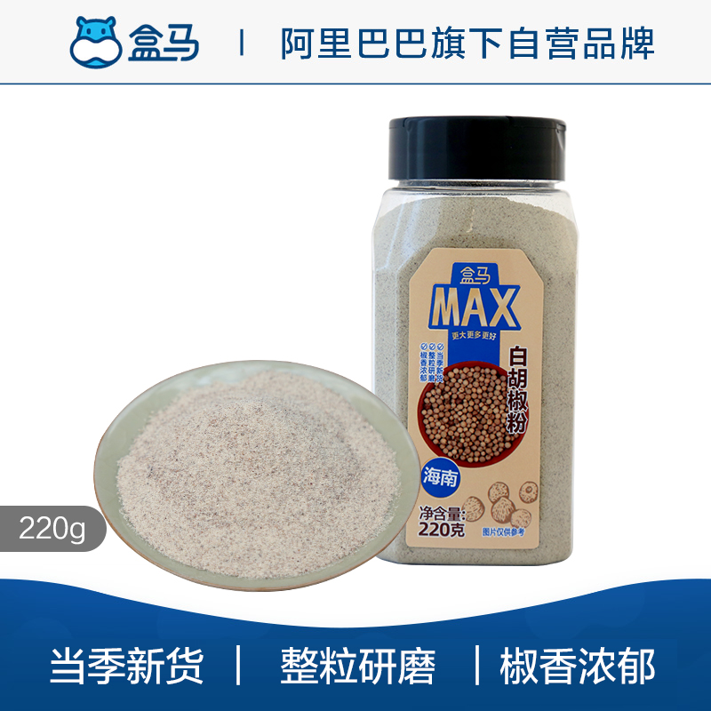 盒马MAX海南特产白胡椒粉调味料瓶装 220g厨房家用烧烤西餐配料