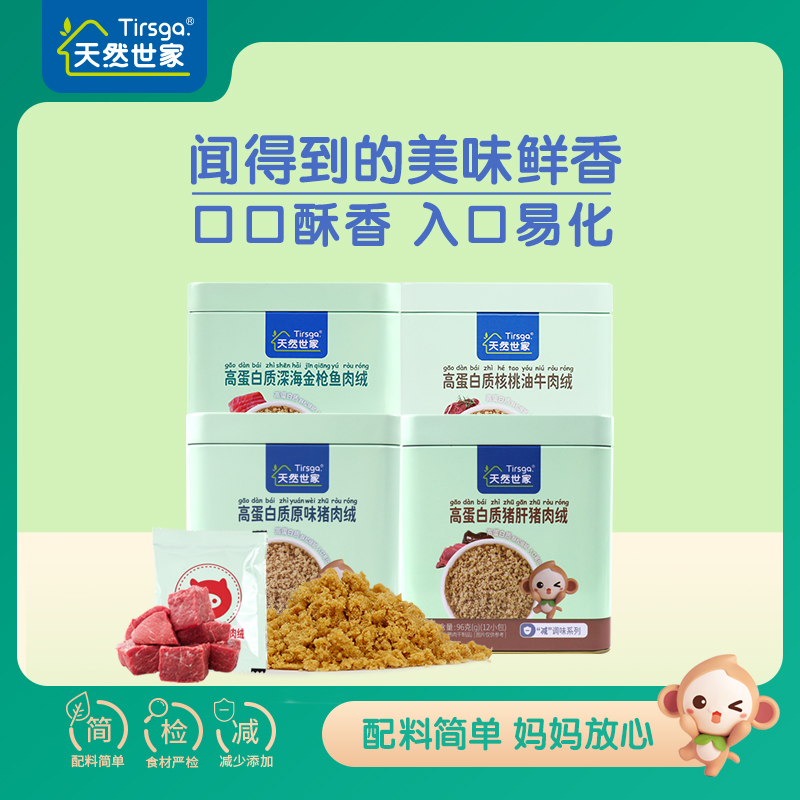 天然世家高蛋白肉绒肉松拌饭肉酥即食烘焙零食送儿童宝宝食谱