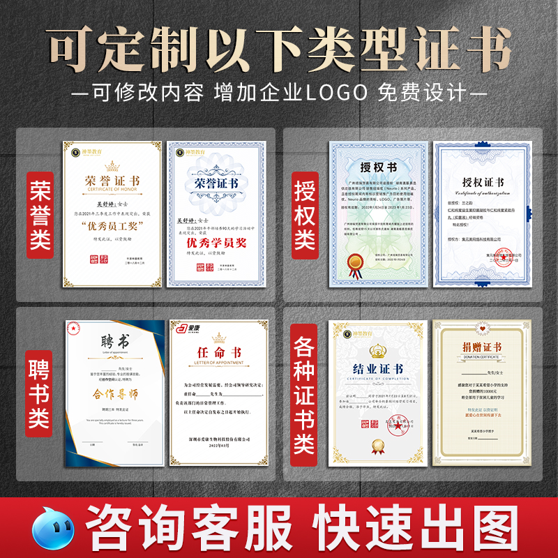 电子证书打印塑封A4营业执照商标注册证荣誉证书游泳结业奖状彩色打印图片过塑A4舞蹈考级比赛执照专利授权书
