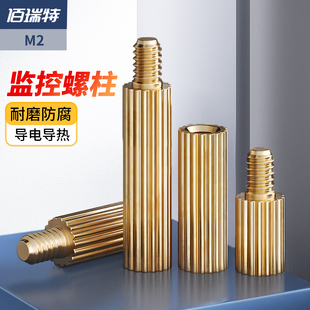 M2双通铜柱圆形滚花监控支撑柱单头铜柱安防摄像机隔离柱间隔螺柱