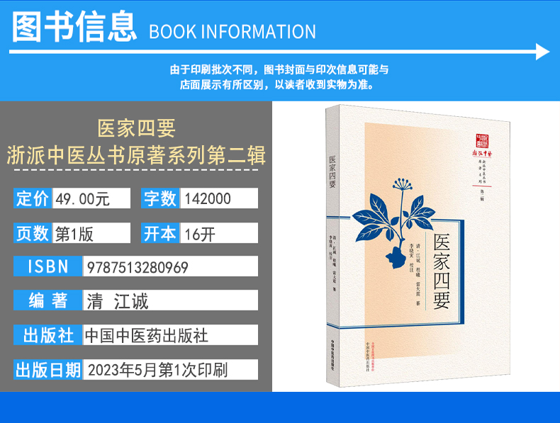 浙派中医丛书原著系列第二辑 社 清 中国中医药出版 9787513280969 江诚等 医家四要
