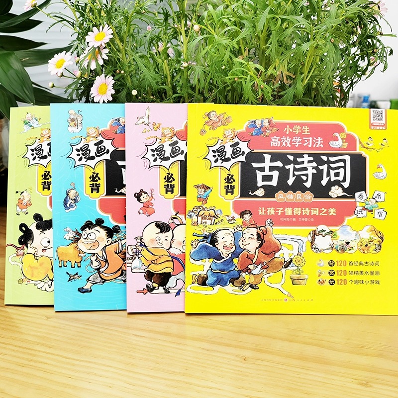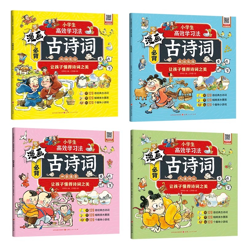 有声伴读 小学生一到六年级古诗词鉴赏赏析大全小学生课外阅读书籍彩图注音版 漫画必背古诗词 全4册