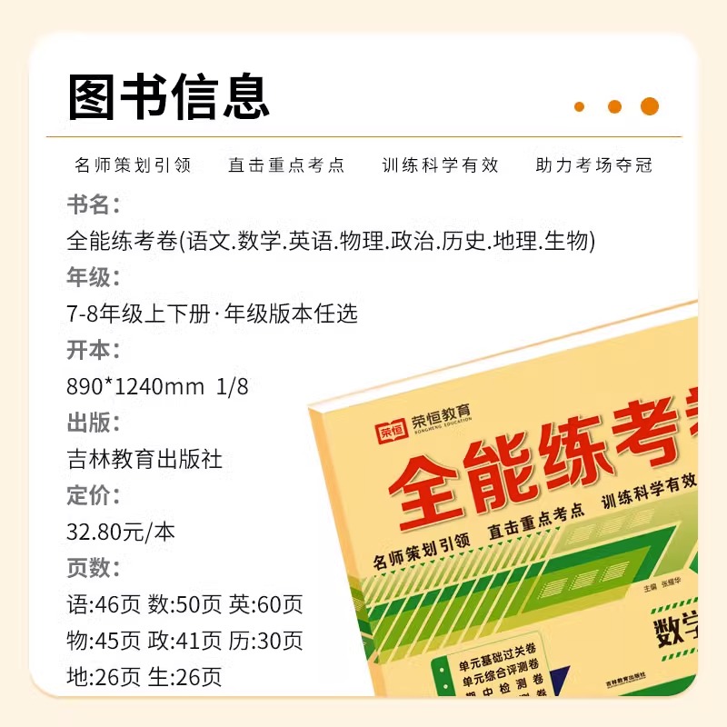 初一二三同步训练习册题全能练考卷七八九年级上册下册初中生试卷测试卷全套语文数学英语物理化学历史生物地理政治卷人教版 北师版