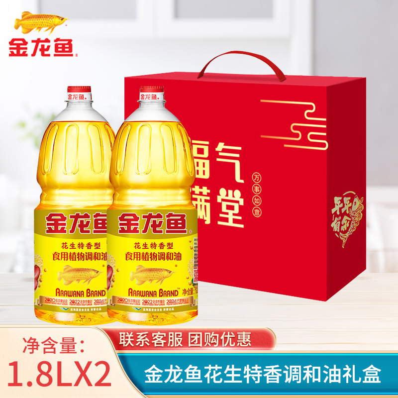 金龙鱼礼盒玉米油1.8L 压榨食用油烘焙家用小瓶油送礼 2瓶装