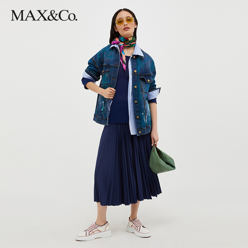A字宽褶半身裙附腰带MBE4SKT012 MOCO短裙2025冬新品 秦岚同款