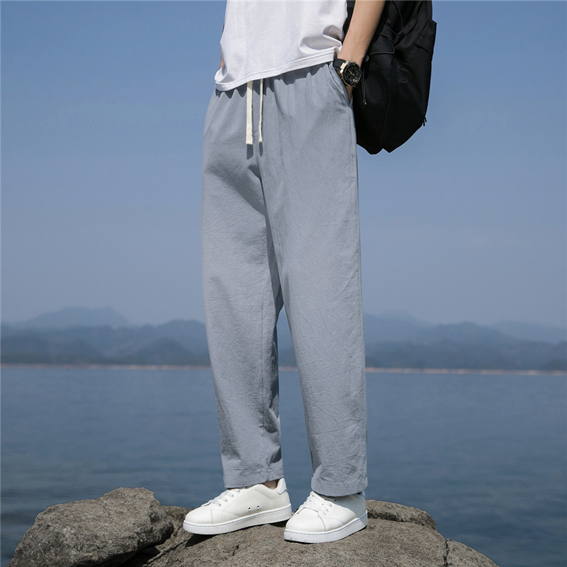 子男士 大码 夏季 透气宽松直筒垂感棉麻阔腿裤 休闲 薄款 中国风亚麻裤