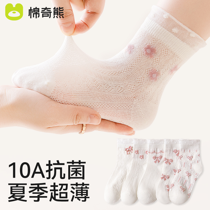 女童袜子纯棉夏季 儿童夏天花边公主袜女孩超薄女宝宝网眼童袜 薄款