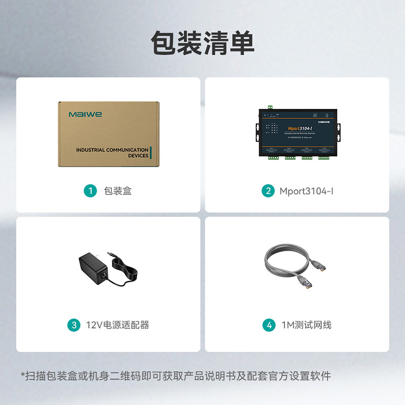 Mport3104 迈威 RS485串口转网口Modbus网关工业通讯设备 422转以太网模块 隔离型串口服务器4路RS485