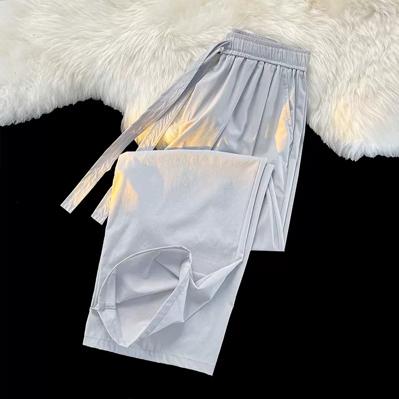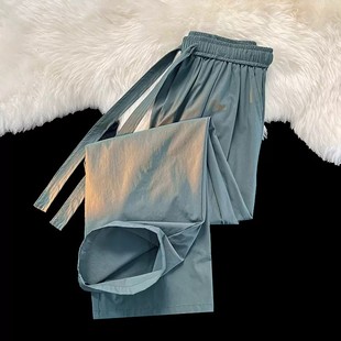 子男港风垂感潮流宽松ins中性风阔腿休闲小西裤 夏季 冰丝松紧腰裤